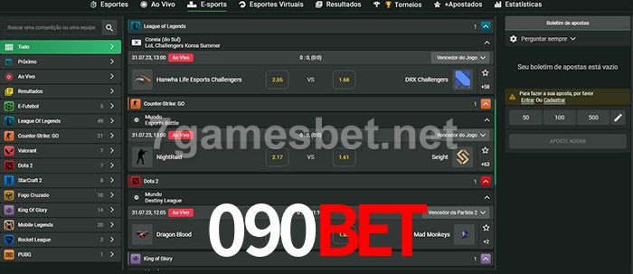 O 090bet oferece uma grande seleção de opções de apostas em e-sports com probabilidades competitivas